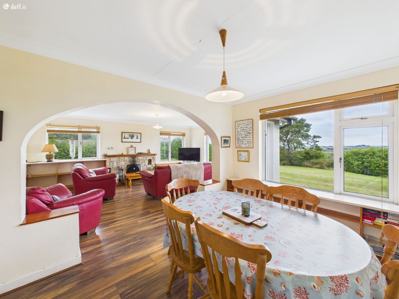 Detached family home standing on a large, elevated site extending to c. .21 hectares (c. .51 acre) with lovely westerly overland views. Located just past Coxtown Cross on the Coast Road within walking distance of the village and close to the ever-popular Dunmore East Cliff Walk. Gas fired central heating (LPG), uPVC double glazed windows, E1 BER. Tiled entrance hall, dining room with laminate wood flooring, large picture window and arch to living room. Spacious triple aspect living room with laminate wood flooring and open fireplace in cut stone surround, large picture window with window seat. Tiled kitchen with oak units and integrated oven and hob, serving hatch to dining room. Tiled utility. Large playroom with wood flooring and French doors to patio. Hallway with access to attic. Tiled shower room, three double bedrooms, two of which have built in wardrobes. Large, tiled family bathroom with hot press. Private surrounding gardens mainly in lawn with mature planting and a beautiful cypress tree. Gravel drive with ample parking. Block built shed to side.Property Features