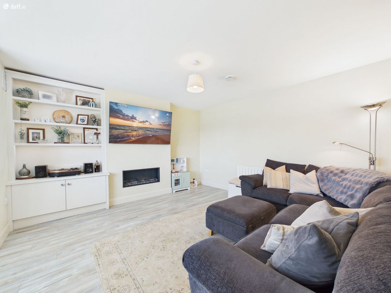 - Living room with electric fire insert
