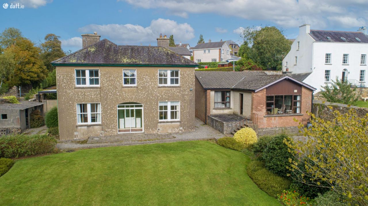 Ard Na Greine, Johns Hill, is a charming and well-proportioned three-bay, two-storey detached family home set on a large private site with mature trees and gardens. Positioned behind a high natural stone wall, this distinctive residence is accessed via two gated double- entrances and a pedestrian gate, with a spacious gravelled driveway and carport, offering both privacy and presence. This bright and airy home retains many original features, including large sash windows, high ceilings, and a classic symmetrical layout, creating a sense of space and timeless character throughout. The home benefits from oil-fired central heating and original single-glazed sash windows.